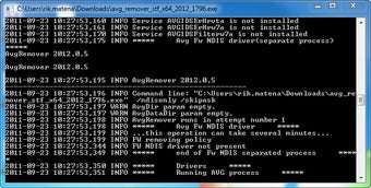 Antivirusapplicaties zijn geregeld hardnekkig om te verwijderen en ook AVG heeft hier een handje van. Daarom hebben de ontwikkelaars van AVG zélf een tool gepubliceerd waarmee je hun programma's gegarandeerd verwijdert. Om de deïnstallatie uit te voeren, dubbelklik je op het gedownloade .exe bestand. Na één bevestiging verschijnt er een antiek DOS-schermpje zonder gebruikersmenu. Dit maakt echter niet uit, want AVG Remover voert het proces dan automatisch uit.